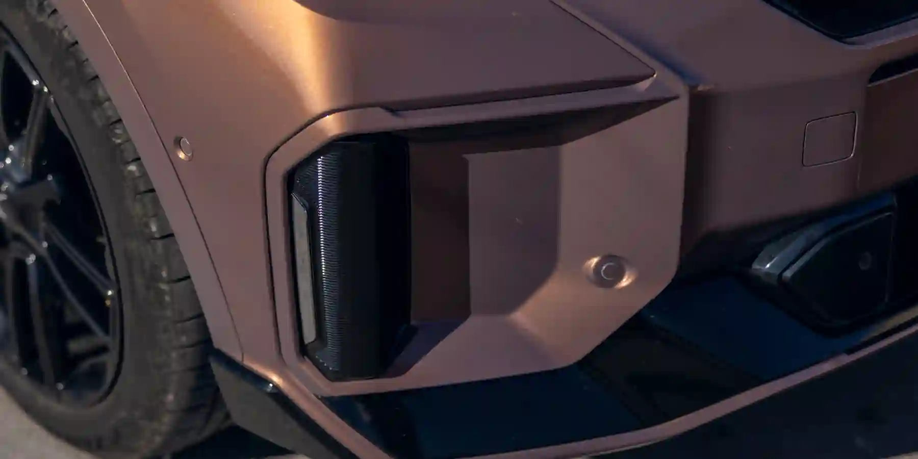 В глаза сразу бросаются выразительные элементы аэродинамического обвеса: выступающие сплиттеры, геометрически сложные бамперы, крупные воздухозаборники, визуально разделенные на несколько секций.