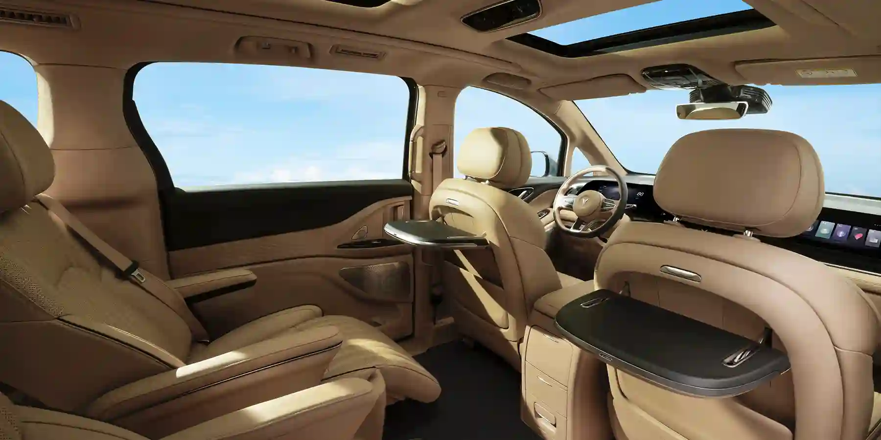 Электрический минивэн VOYAH МЕЧТА / DREAM оборудован тремя инновационными мультимедийными 12,3-дюймовыми дисплеями суммарной шириной 1400 мм, каждый из которых обладает эксклюзивным функционалом. Комфорт обеспечивают двухсекционная панорамная крыша с солнцезащитными шторками, атмосферная подсветка салона с 64 вариантами цветовых решений, а также мощный акустический комплекс премиального уровня с 10 динамиками. Высокоэффективная система кондиционирования дополнена ионизатором воздуха с аромадиффузором, позволяющим менять ароматику салона в зависимости от предпочтений водителя и пассажиров.